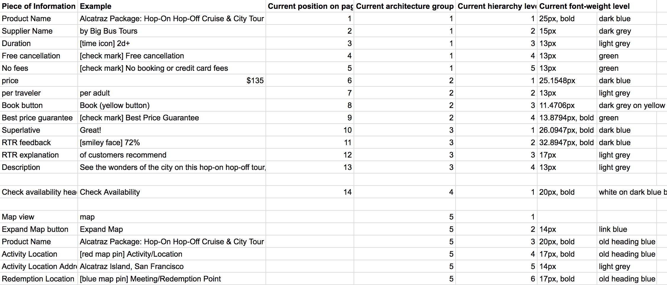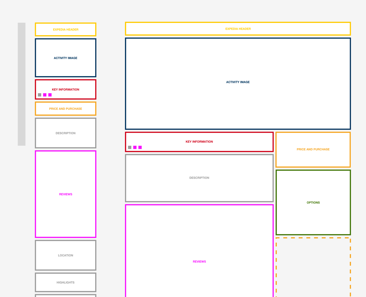 First, I analyzed the existing information architecture of Expedia's Activities search results page and activity information pages to document the current state and find any major issues.