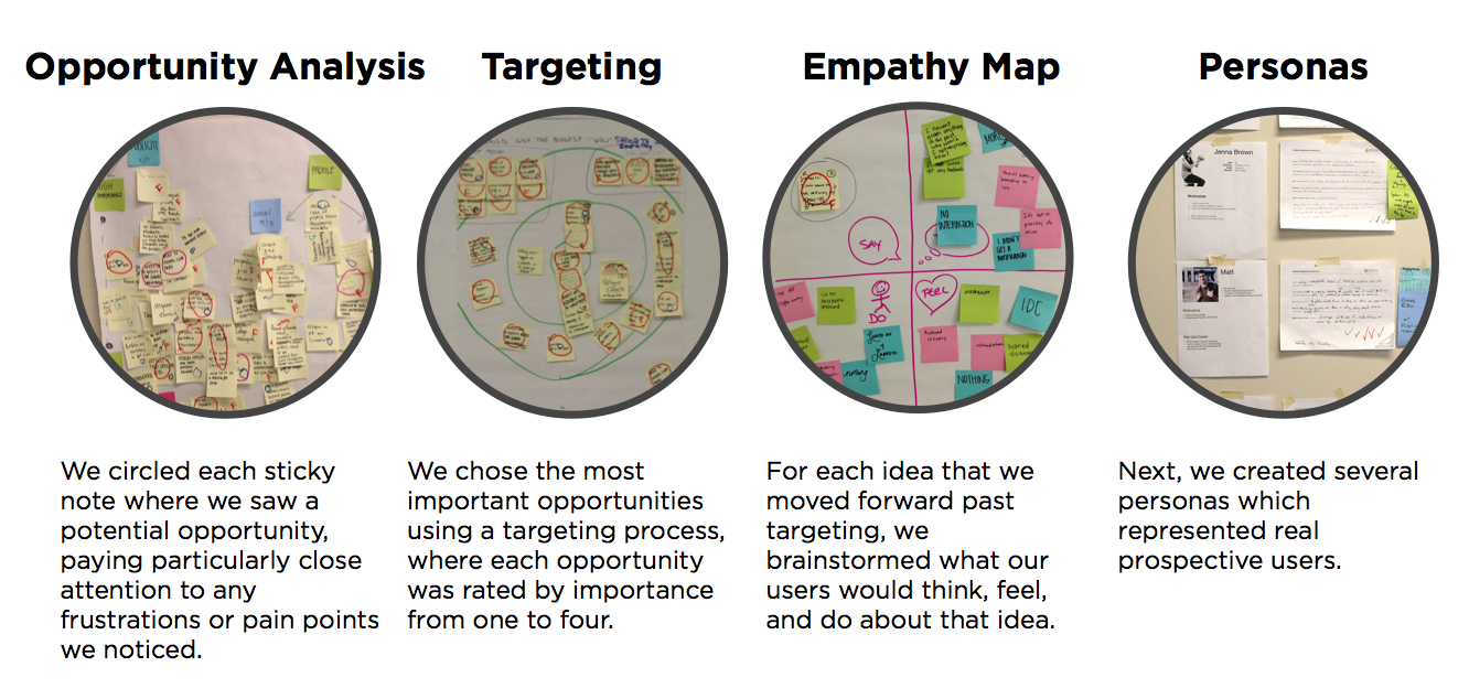 Next we wrote problem statements to define exactly what it was we were going to try to address. Each problem statement was written to address a need of a specific persona.