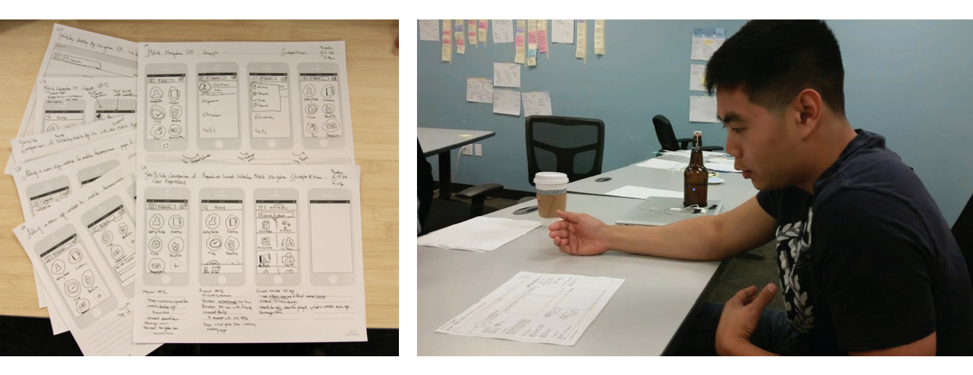 Now that we had chosen our key features using the targeting process, we were ready to start prototyping. We did this by making rough sketches of interfaces and interactions that addressed our identified problem statments using our chosen solution ideas. Once we had some ideas sketched out, we turned them into paper prototypes.